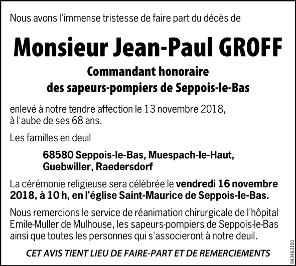 Décédé à Mulhouse (68100, France) le mardi 13 novembre 2018 à l'âge de 67 ans