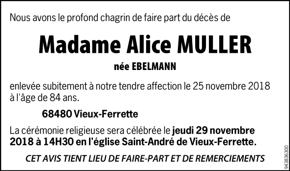 Madame Alice Anna MULLER née EBELMANN