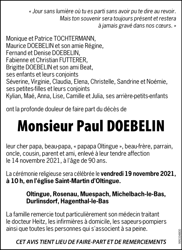 Monsieur Paul DOEBELIN