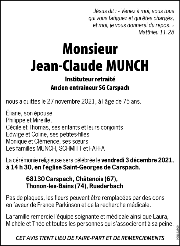 Décédé à Carspach (68130, France) le samedi 27 novembre 2021 à l'âge de 75 ans