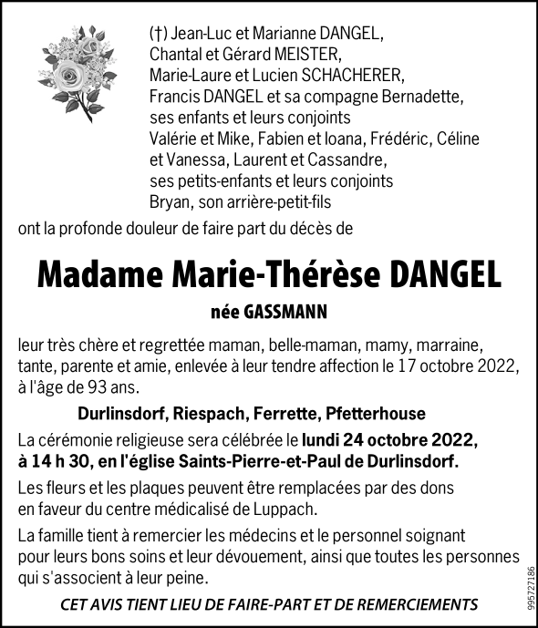 Madame Anna Thérèse Marie DANGEL née GASSMANN