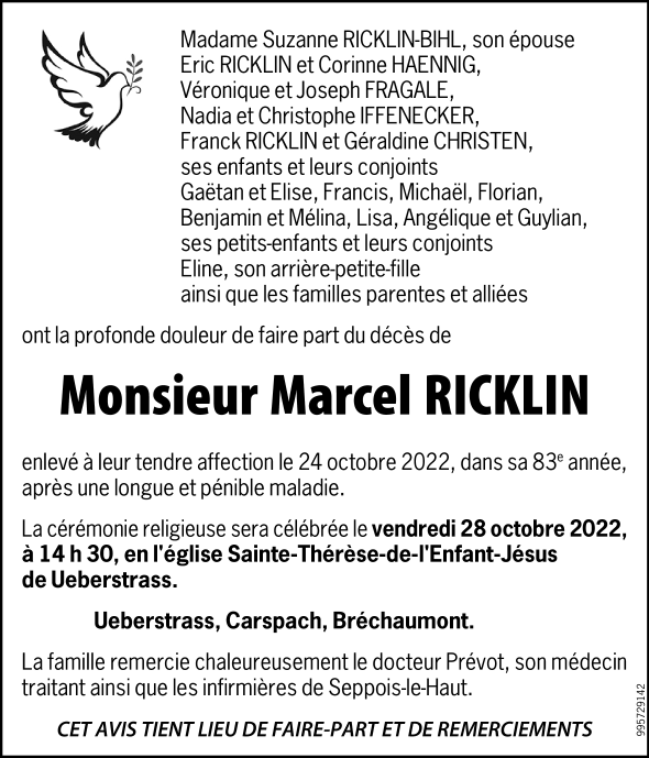 Décédé à Mulhouse (68100, France) le lundi 24 octobre 2022 à l'âge de 82 ans
