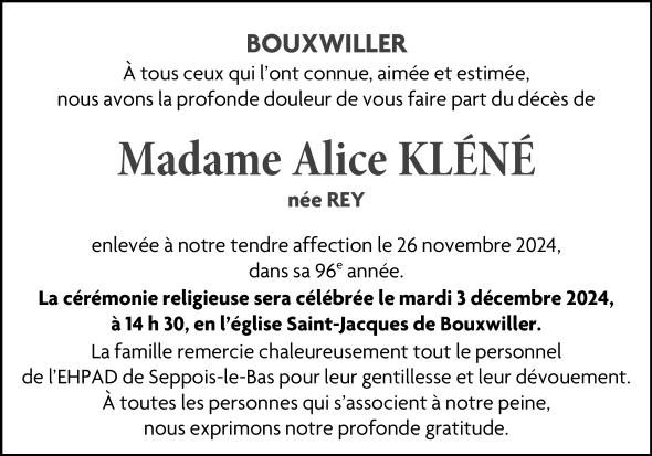 Madame Marie Alice KLÉNÉ née REY