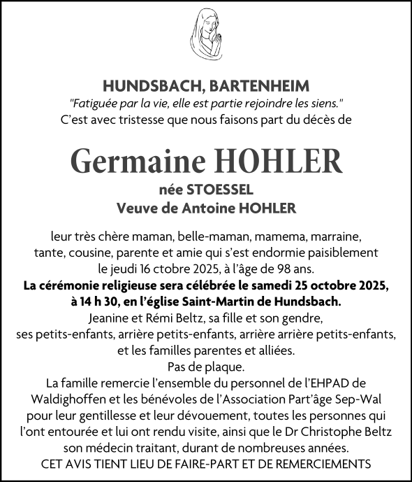 Madame Germaine HOHLER née STOESSEL