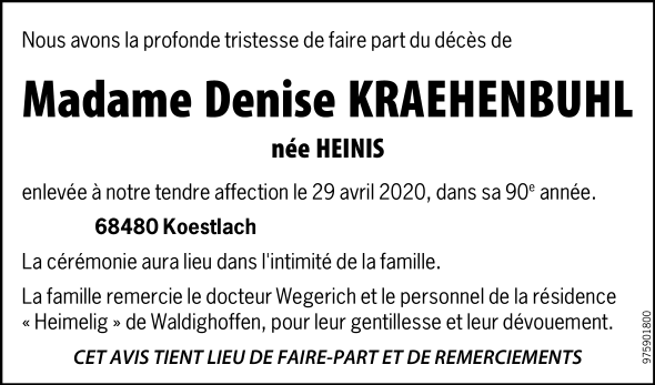 Madame Denise KRAENHENBUHL née HEINIS