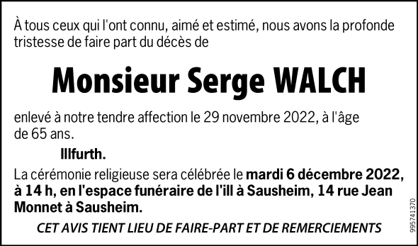 Décédé à Altkirch (68130, France) le mardi 29 novembre 2022 à l'âge de 65 ans