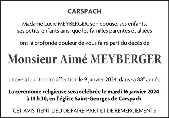 Décédé à Carspach (68130, France) le mardi 9 janvier 2024 à l'âge de 87 ans
