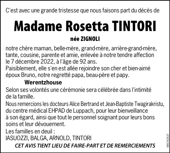 Décédée à Bouxwiller (68480, France) le mercredi 7 décembre 2022 à l'âge de 92 ans