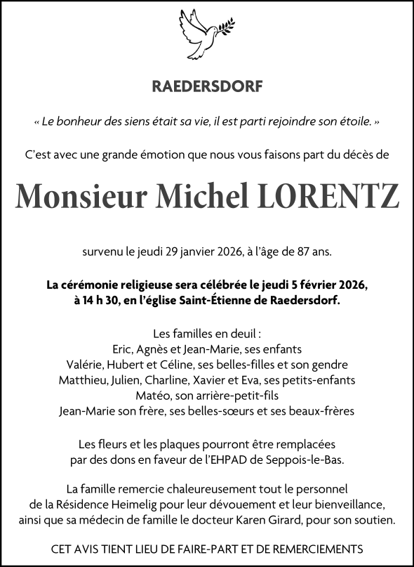 Décédé à Seppois-le-Bas (68580, France) le jeudi 29 janvier 2026 à l'âge de 87 ans