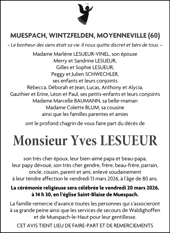 Décédé à Muespach-le-Haut (68640, France) le vendredi 13 mars 2026 à l'âge de 80 ans