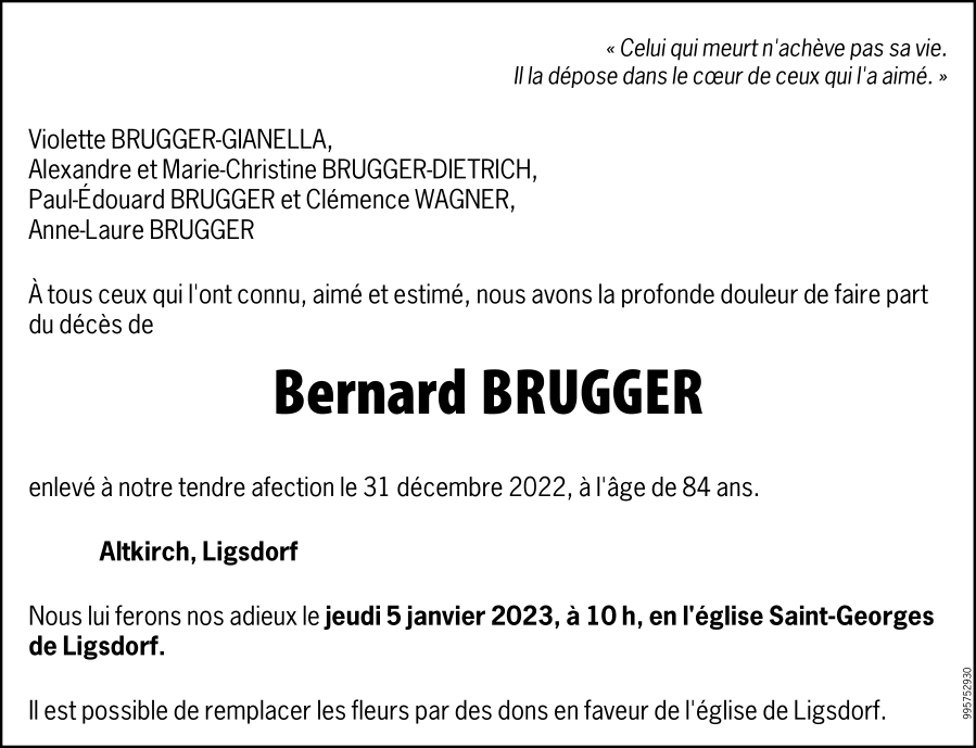Décédé à Sentheim (68780, France) le samedi 31 décembre 2022 à l'âge de 84 ans