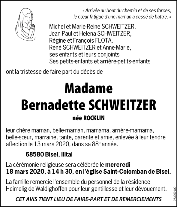 Madame Bernadette SCHWEITZER née ROCKLIN