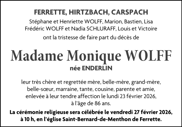 Décédée à Mulhouse (68100, France) le lundi 23 février 2026 à l'âge de 86 ans