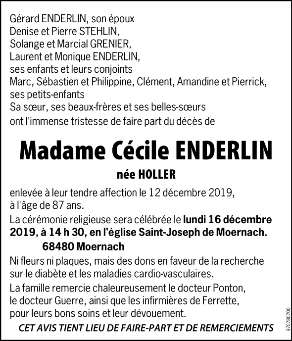 Madame Cécile Agathe ENDERLIN née HOLLER