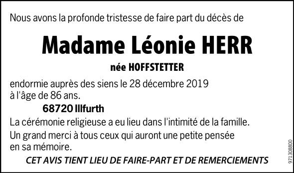 Madame Léonie Marcelle HERR née HOFFSTETTER