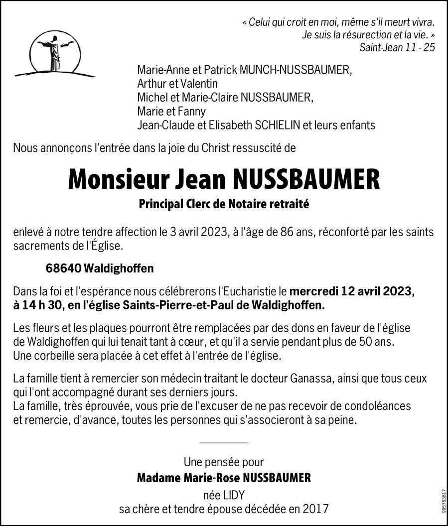 Veuf de Monsieur Marie-Rose NUSSBAUMER