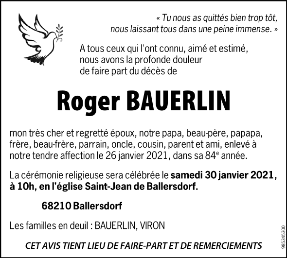 Décédé à Mulhouse (68100, France) le mardi 26 janvier 2021 à l'âge de 83 ans