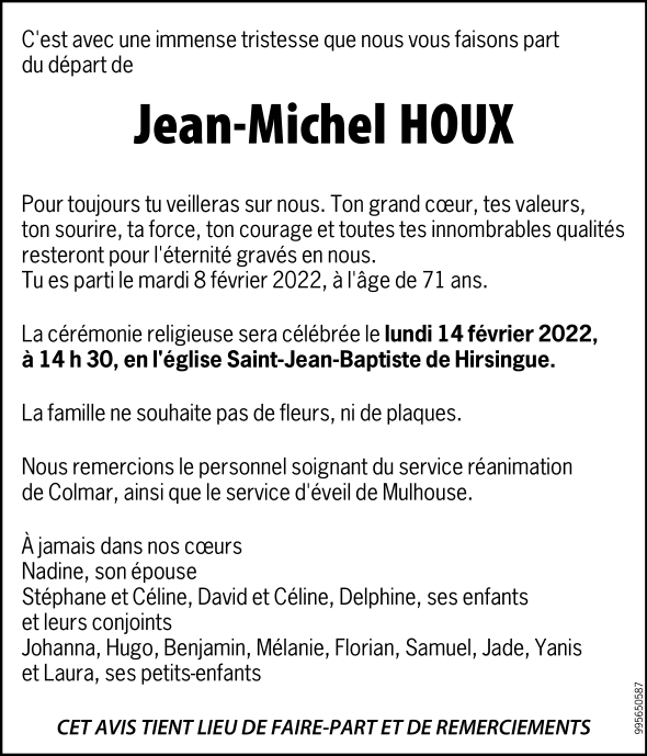 Décédé à Colmar (68000, France) le mardi 8 février 2022 à l'âge de 71 ans