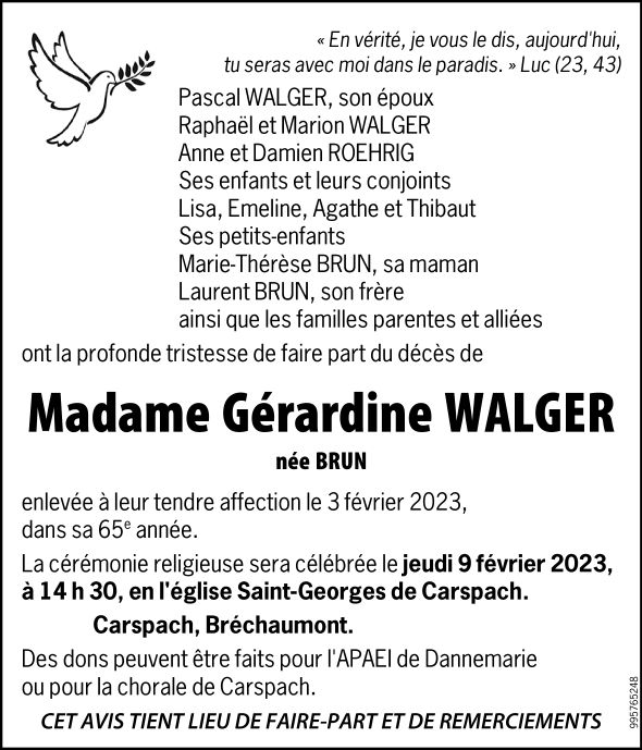 Décédée à Mulhouse (68100, France) le vendredi 3 février 2023 à l'âge de 64 ans