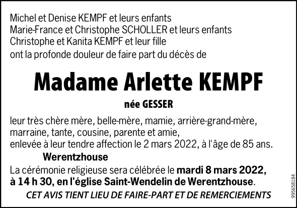 Madame Arlette KEMPF née GESSER