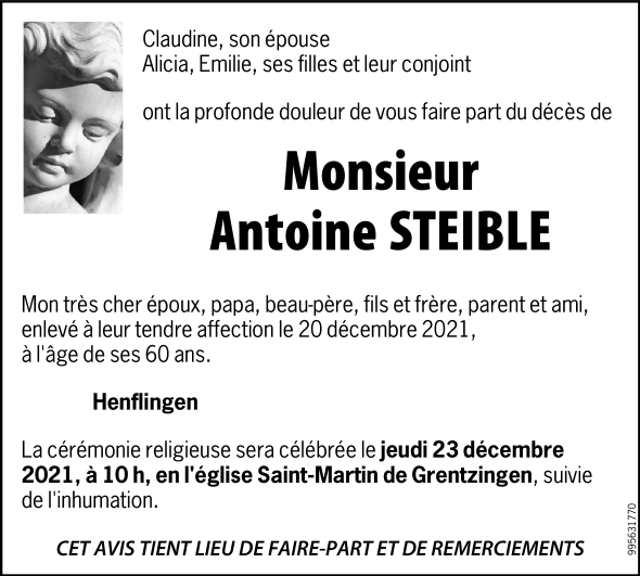 Décédé à Mulhouse (68100, France) le lundi 20 décembre 2021 à l'âge de 60 ans