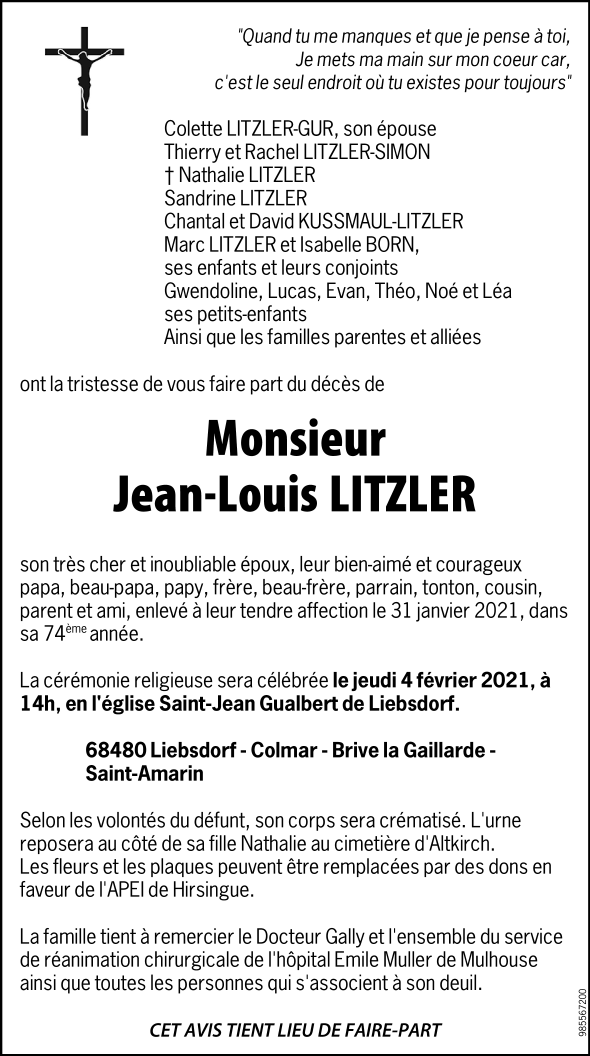 Décédé à Mulhouse (68100, France) le dimanche 31 janvier 2021 à l'âge de 73 ans