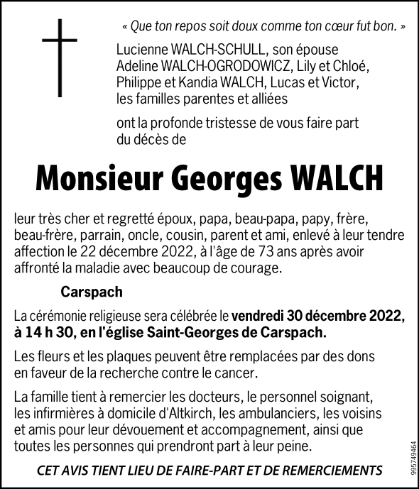 Décédé à Mulhouse (68100, France) le jeudi 22 décembre 2022 à l'âge de 73 ans