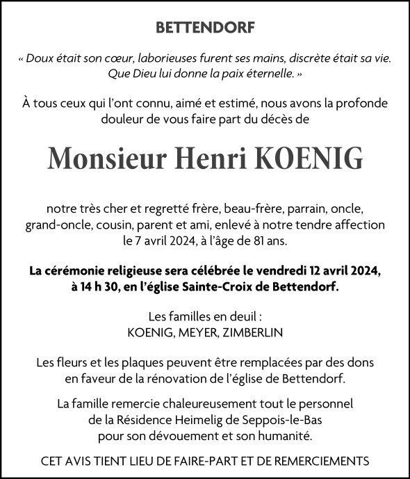 Décédé à Seppois-le-Bas (68580, France) le dimanche 7 avril 2024 à l'âge de 81 ans