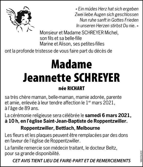 Madame Jeannette Madeleine SCHREYER née RICHART
