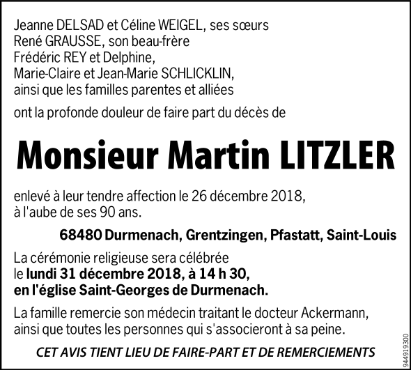 Veuf de Madame Germaine LITZLER née GRAUSSE
