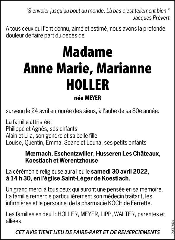 Madame Anne Marie HOLLER née MEYER