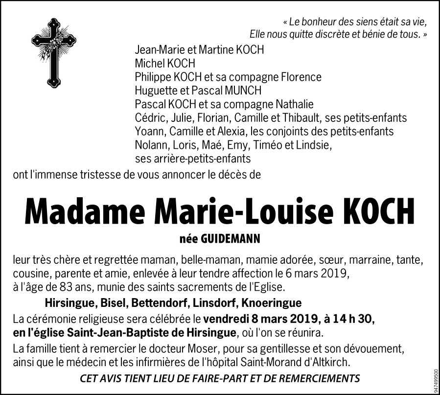 Madame Marie-Louise KOCH née GUIDEMANN