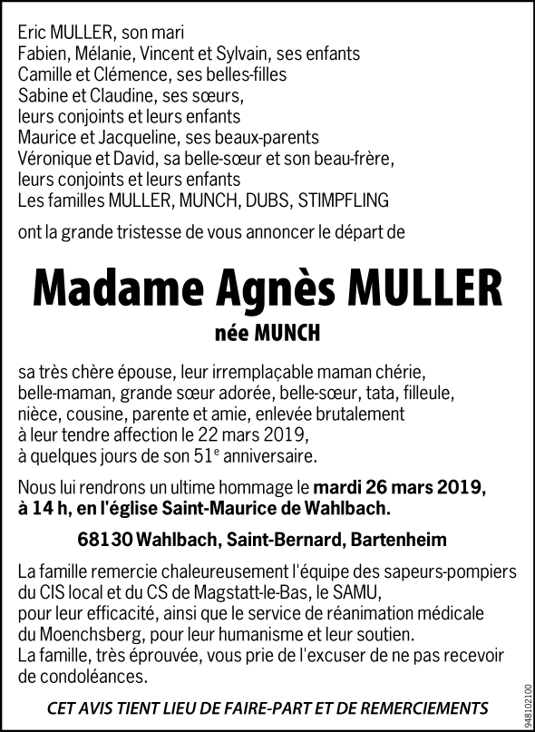 Madame Agnès Fernande MULLER née MUNCH