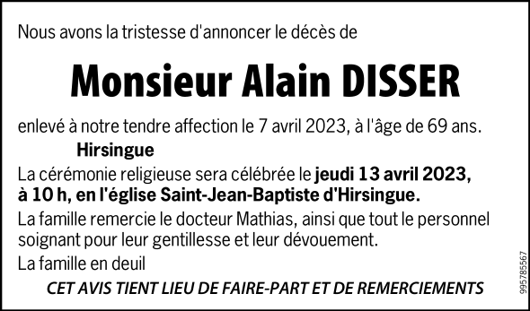 Décédé à Mulhouse (68100, France) le vendredi 7 avril 2023 à l'âge de 69 ans