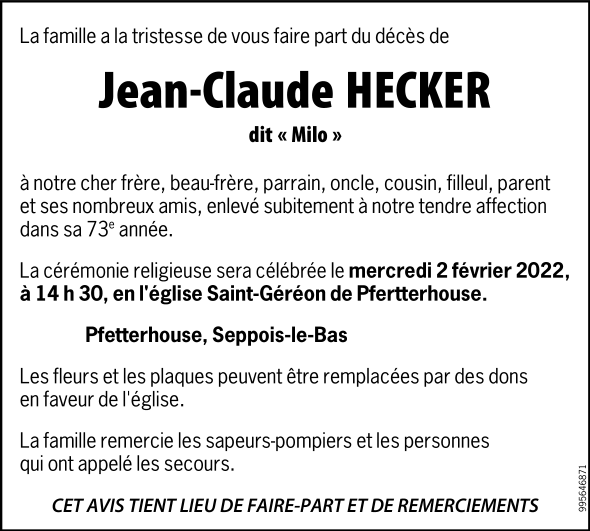 Monsieur HECKER Jean Claude