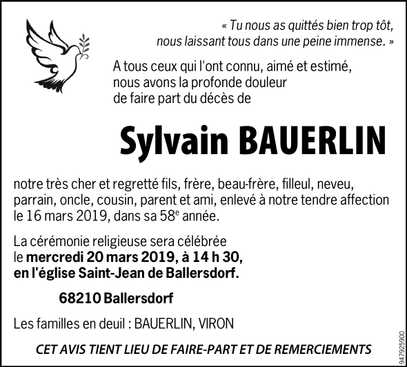 Décédé à Mulhouse (68100, France) le samedi 16 mars 2019 à l'âge de 57 ans
