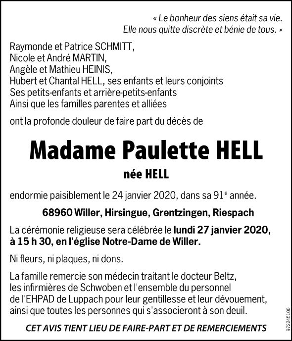 Madame Paulette HELL née HELL