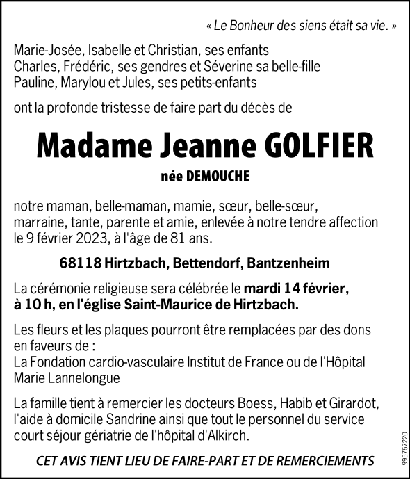 Madame Jeanne GOLFIER née DEMOUCHÉ